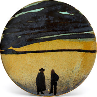 Фарфор, надглазурная роспись. D 26.5 см.